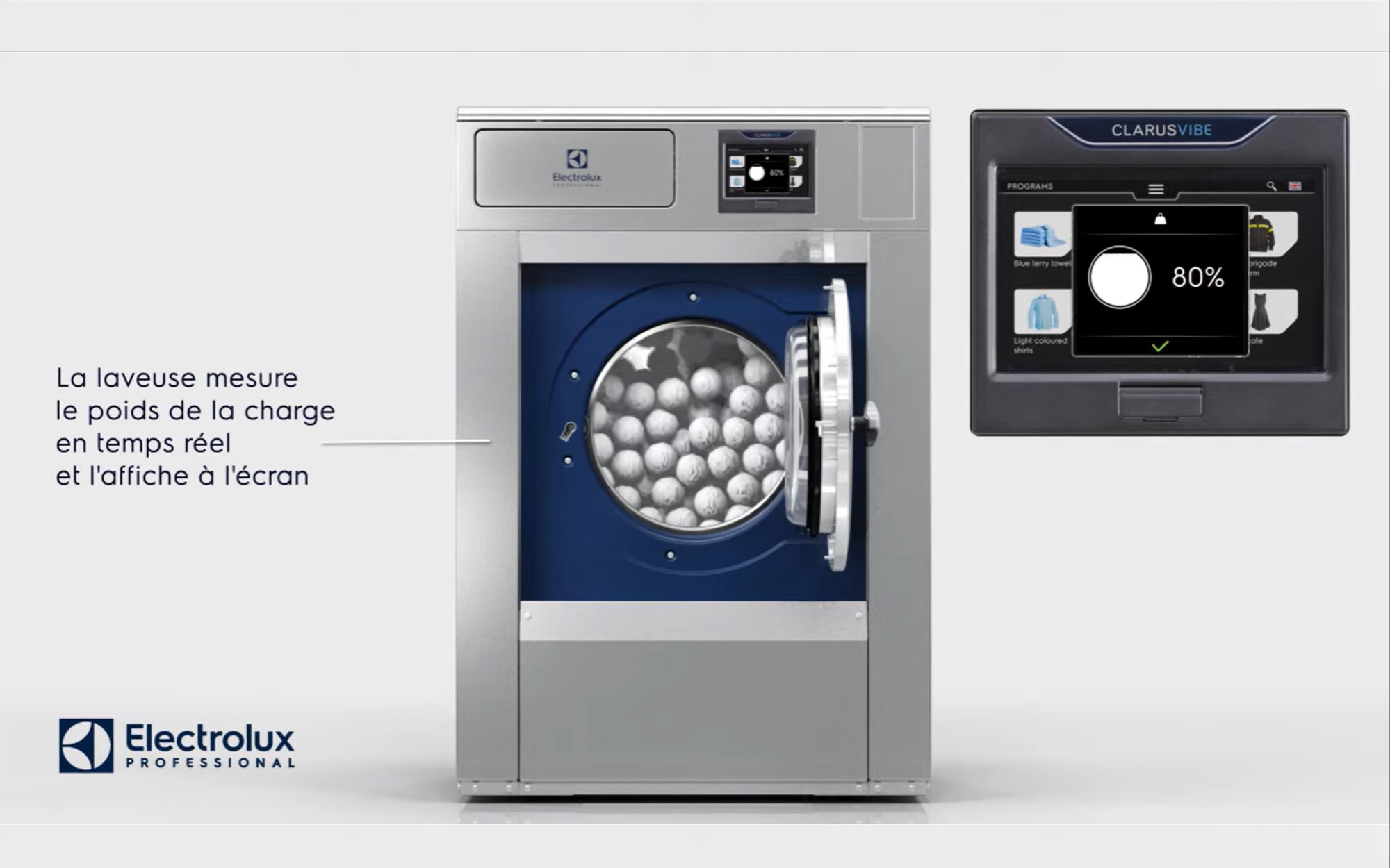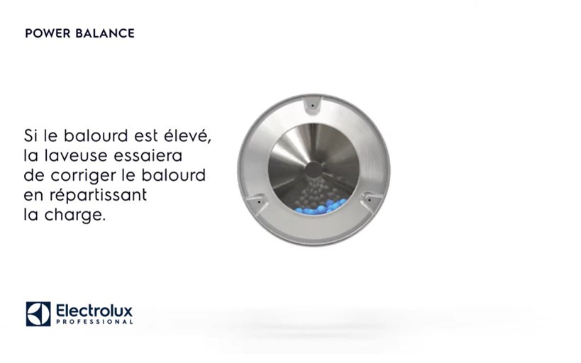 La fonction Power Balance des laveuses essoreuses Electrolux Professional permet de prendre la mesure du balourd en temps réel et d’optimiser la puissance d’essorage.
