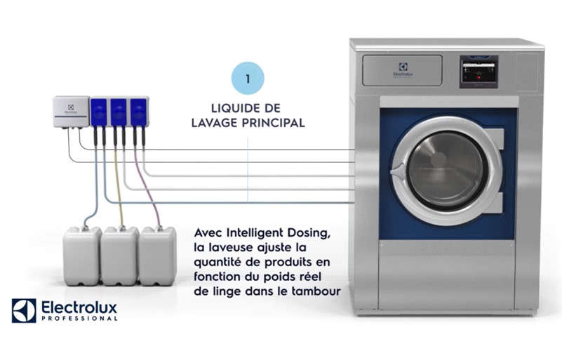 La fonction Intelligent Dosing des laveuses essoreuses Electrolux Professional vous permet de réaliser des économies de lessiviels de façon automatique.
