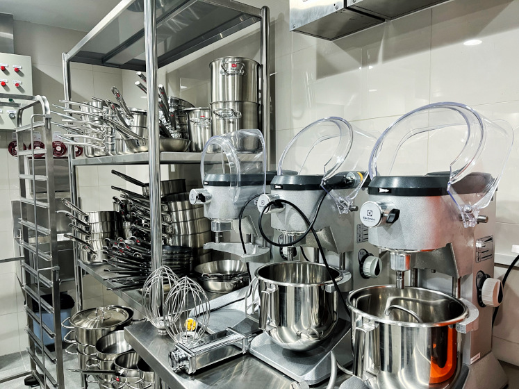 Το στούντιο διαθέτει πρωτοποριακές λύσεις επαγγελματικής κουζίνας, όπως φούρνους υψηλής απόδοσης, επαγγελματικές εστίες και συστήματα προετοιμασίας τροφίμων, σχεδιασμένα για να υποστηρίζουν την εκπαίδευση μαγειρικής παγκόσμιας κλάσης. Συνδυάζοντας καινοτομία, ενεργειακή αποδοτικότητα και εργονομικό σχεδιασμό, ο εξοπλισμός της Electrolux Professional επιτρέπει σε σεφ και σπουδαστές να επιτυγχάνουν γαστρονομική αριστεία σε ένα υψηλού επιπέδου μαθησιακό περιβάλλον.