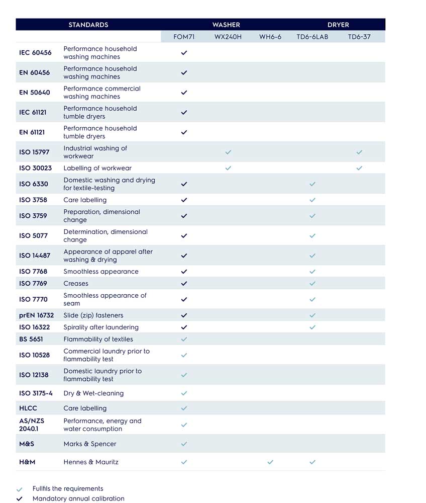 Μαζί με το πλυντήριο αναφοράς Wascator, αποτελεί ένα ασυναγώνιστο δίδυμο: ένα ολοκληρωμένο σύστημα δοκιμών προτύπων, υφασμάτων και ενδυμάτων.