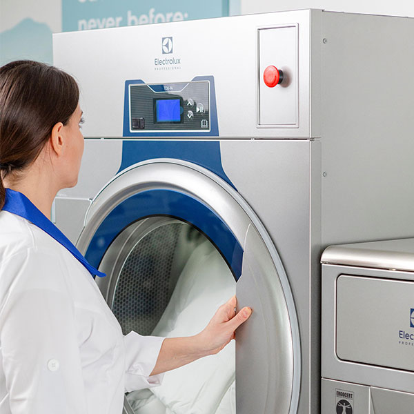 Electrolux Professional’s Line 6000 heat pump dryers are far more efficient than vented dryers. With their inverter-driven compressor and electronic valve technology, they can complete a cycle in just 35 minutes, reducing your company’s energy consumption by up to 65% compared to vented models.