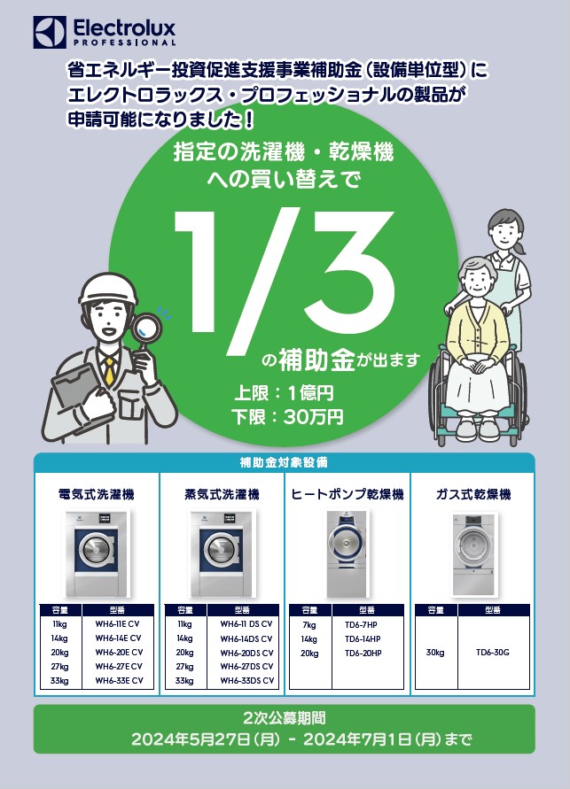 省エネルギー投資促進支援事業補助金(設備単位型)チラシダウンロード 2024-06-04T09:19:36+00:00 Electrolux Professional
