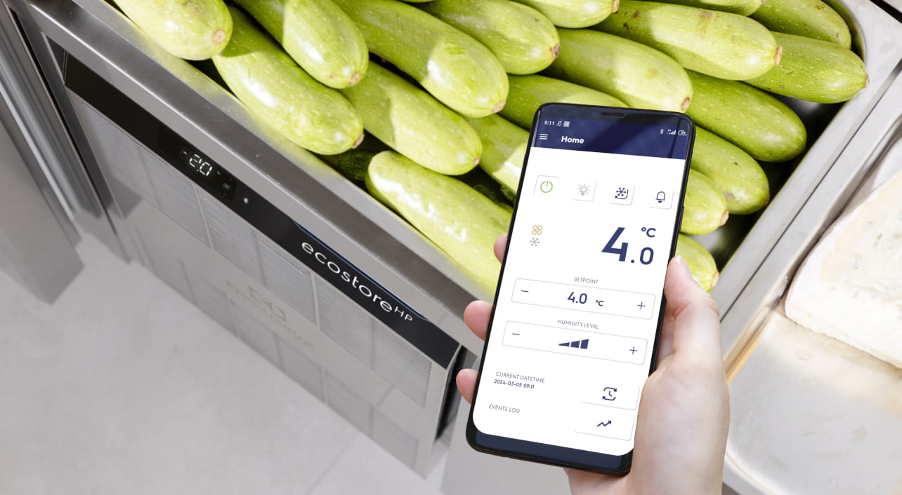 Voedsel blijft langer vers dankzij de mogelijkheid om het vochtigheidsniveau in te stellen volgens het type opgeslagen voedsel. Vochtigheidsregeling kan worden geregeld via de Electrolux Professional Fridge Control App.