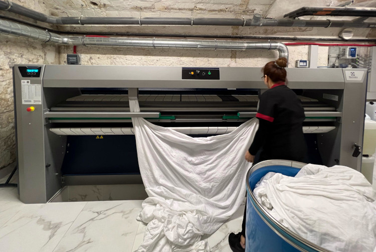 Det installerte Line 6000-utstyret er ergonomisk og 4****-sertifisert av den uavhengige organisasjonen ErgoCert. Ergonomien til strykerullen var et svært viktig punkt for meg, fordi teamene mine var skeptiske til dette nye arbeidet med å stryke laken. Vi har ikke mottatt noen klager fra personalet om ryggproblemer. Jeg er svært fornøyd fordi Electrolux Professional ga meg elementer av ergonomisk sertifisering, noe som gjorde at jeg fikk hele teamet med meg i dette insourcing-prosjektet