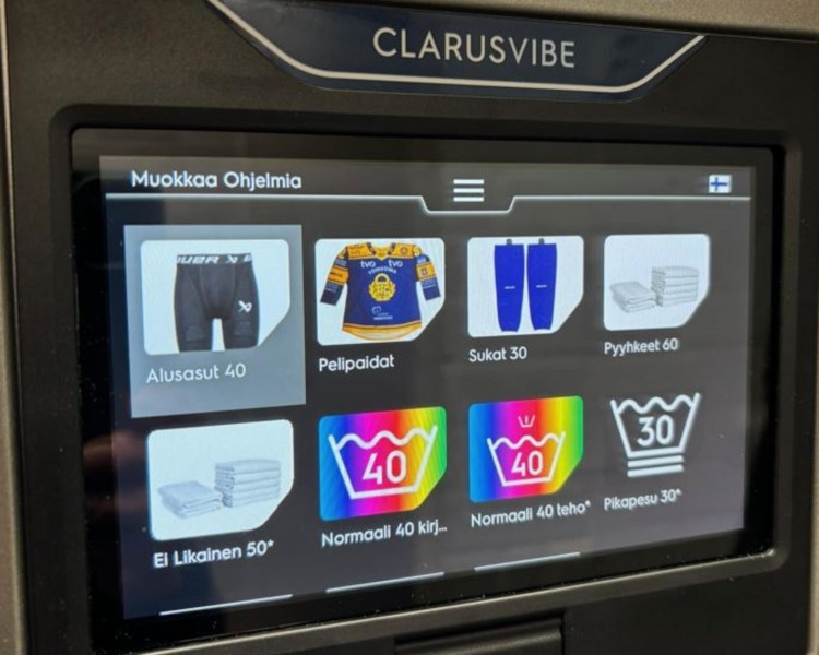 Smidige vaskeprosesser spiller en viktig rolle i hverdagen til Rauman Lukko. Lagets trenings- og kampklær vaskes etter hvert arrangement.