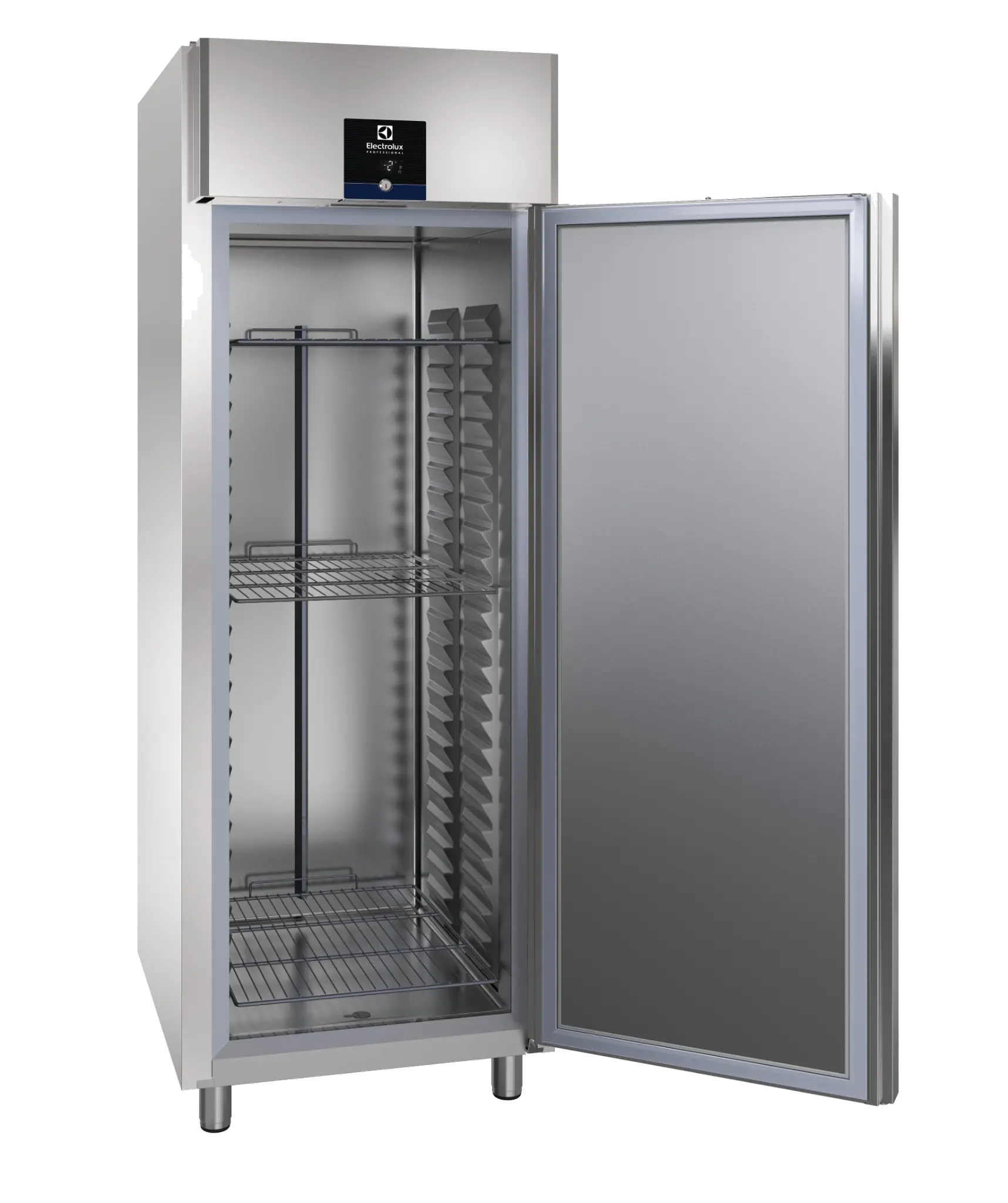 Thanks to their new design, the Electrolux Professional ecostore cabinets provide, on average, 45 litres more available space, compared to equivalent cabinets in the market. Exceptional sturdiness is guaranteed by internal and external full AISI 304 stainless steel construction.